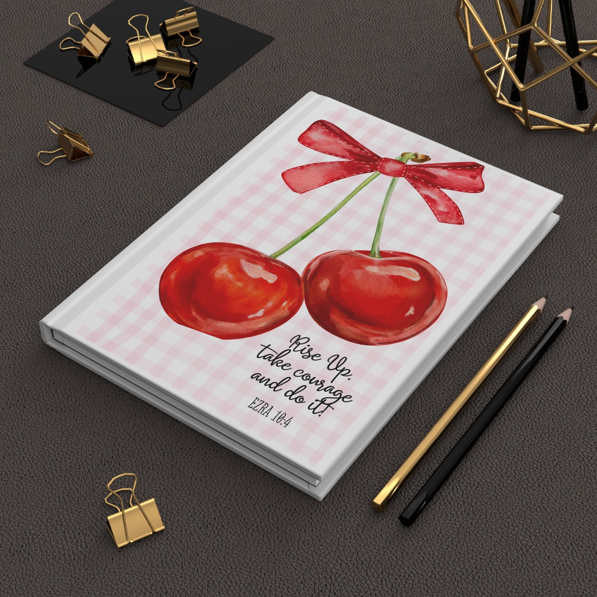 "Rise Up, take courage and do it" Cherry Gingham Hardcover Journal — Inspirational Notebook
